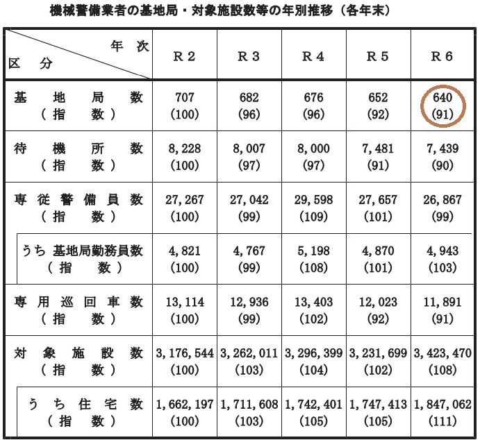 基地局だけではなく警備会社そのものが年々減少傾向にあります。